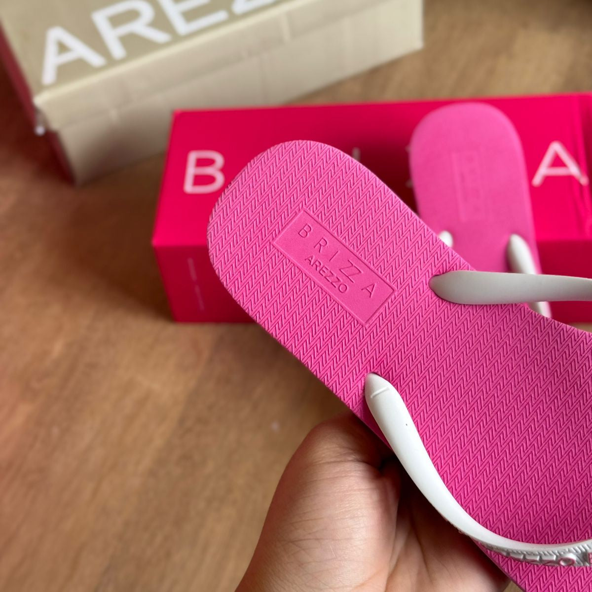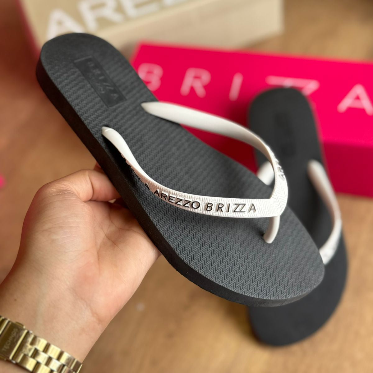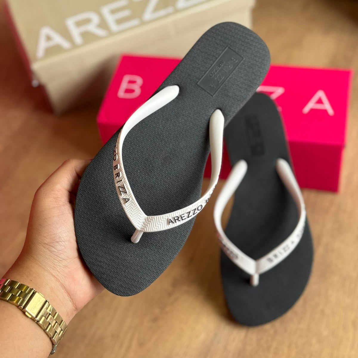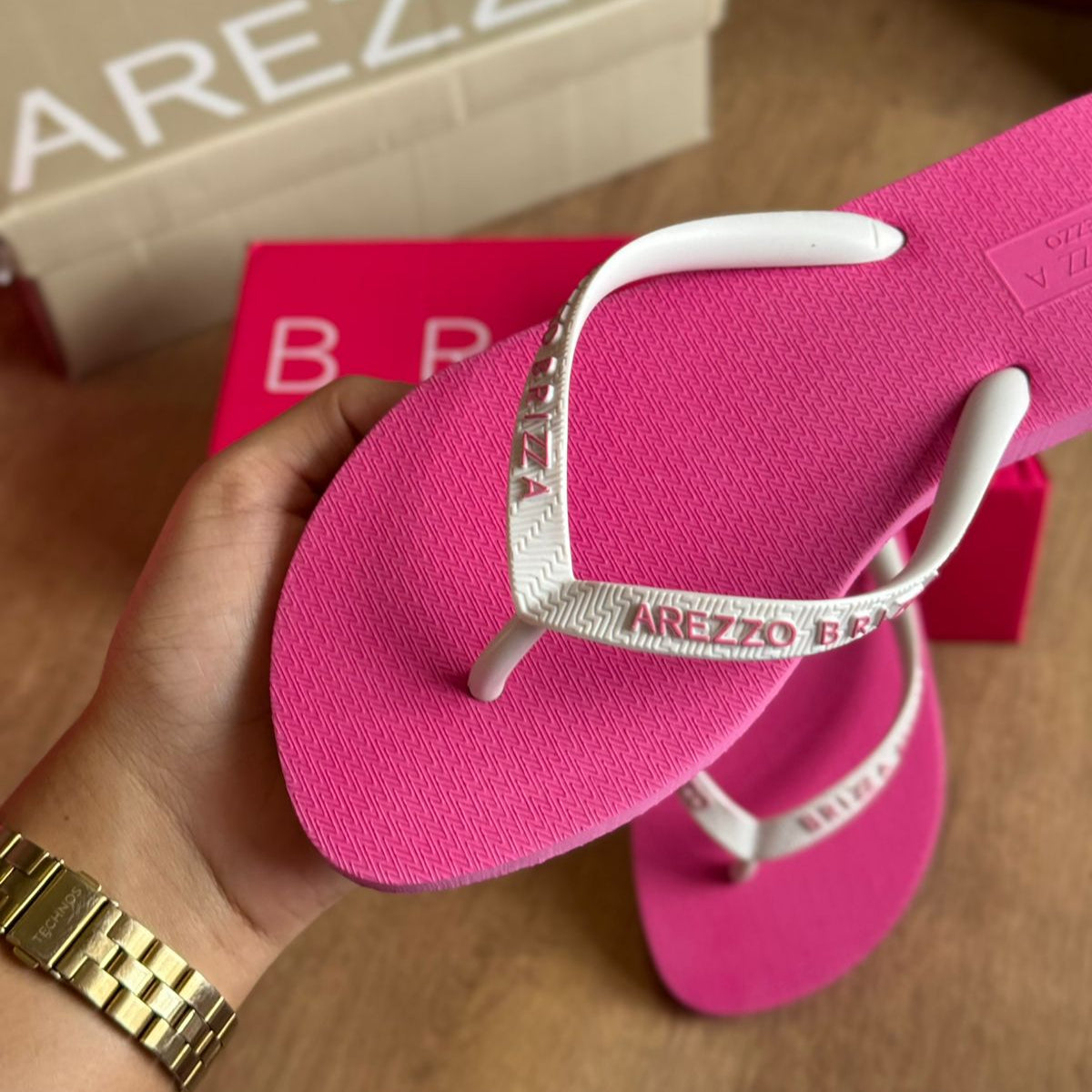 Gisele Fonseca, AracajuChegou tudo certinho. As Havaianas são super macias e a Arezzo é um luxo.